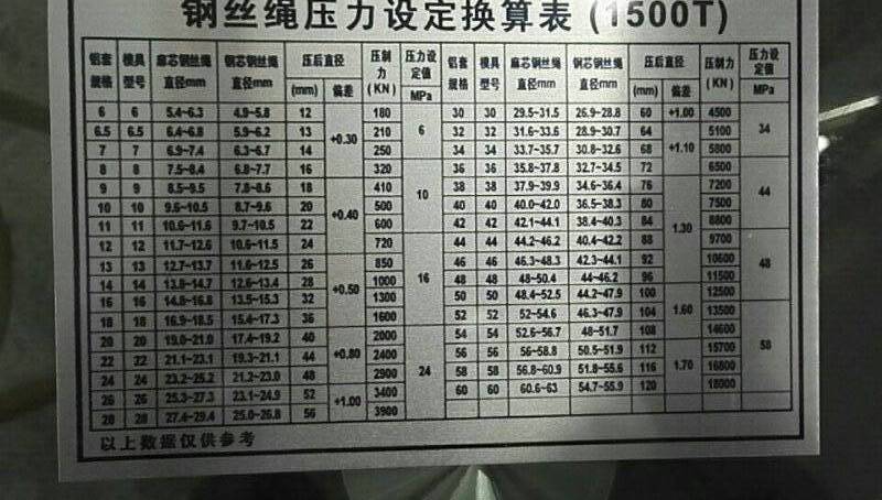 首先模具和鋁套型號是必須對應(yīng)的,比如6mm鋁套就用6#壓套機模具,8mm鋁套就用8#模具,而鋼絲繩的尺寸不一定是整數(shù),廠家配的模具正常都是偶數(shù)配,壓到?jīng)]對應(yīng)尺寸的鋼絲繩,這點不用擔心,模具都是有壓制范圍的,正常用1mm的上下范圍,比如15mm的鋼絲繩,可以用14mm或16mm的模具,總之最好的分別方法就是,不管鋼絲繩的尺寸是多少,找數(shù)值離得最近的模具就壓就可以了。還有一個重點,剛剛說的情況都是麻芯的鋼絲繩,而鋼芯的鋼絲繩正常都是比麻芯的鋼絲繩所用模具大一個型號。參數(shù)這樣的方法,客戶在使用鋼絲繩壓套機模具時就不會不知道如果選擇了。
